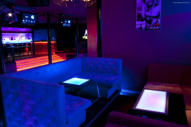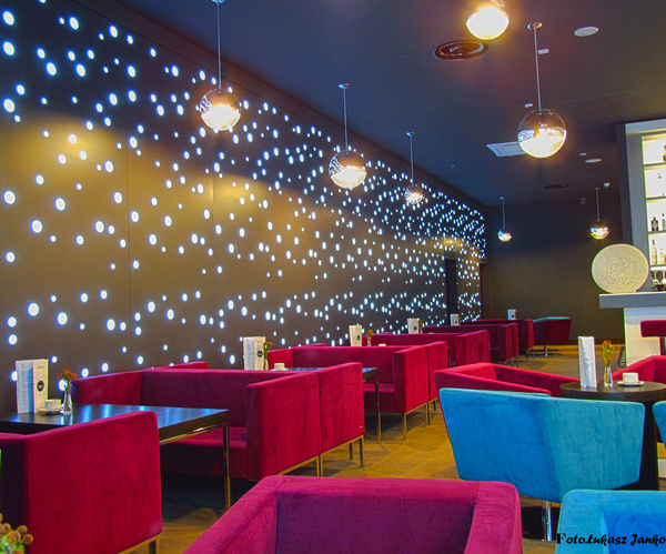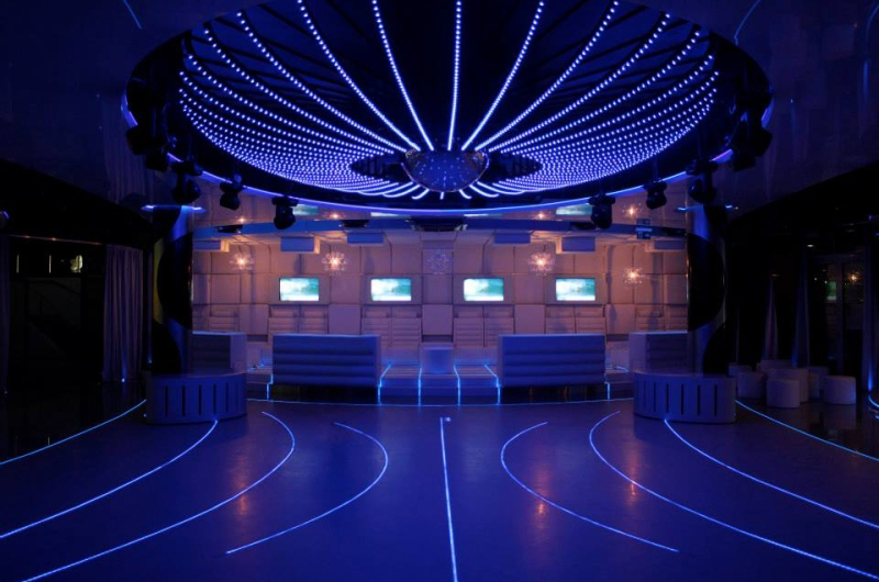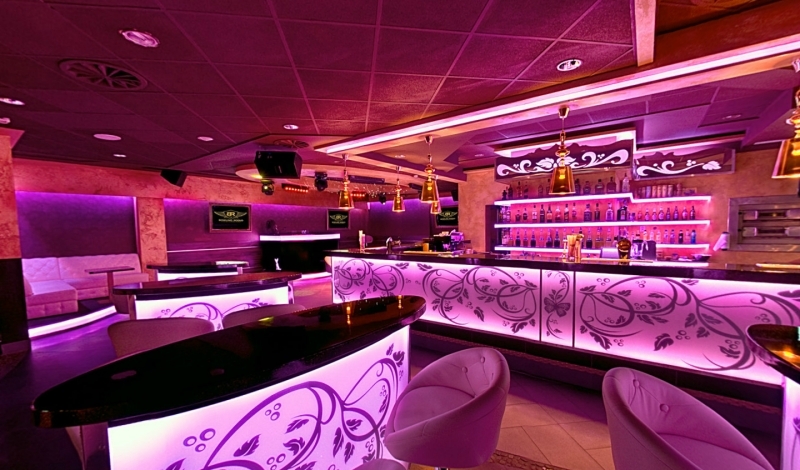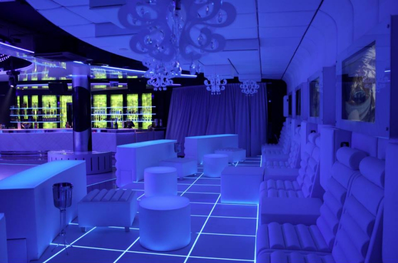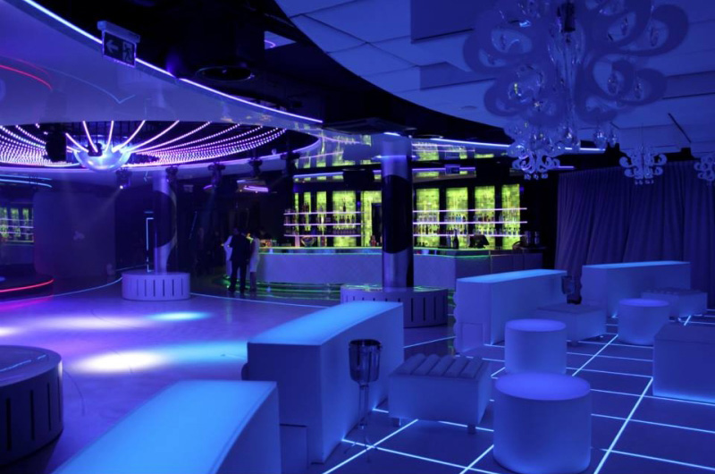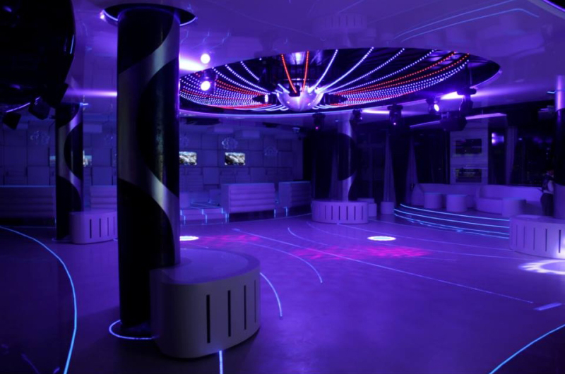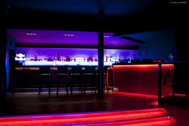 Oświetlenie typu LED całości lokalu: podłoga, meble, bary, ściany, sufity barisol.