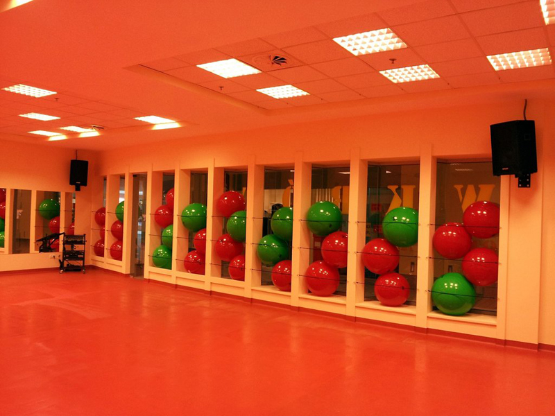 Nagłośnienie i oświetlenie efektowe sali Fitness oraz sali Aerobik.