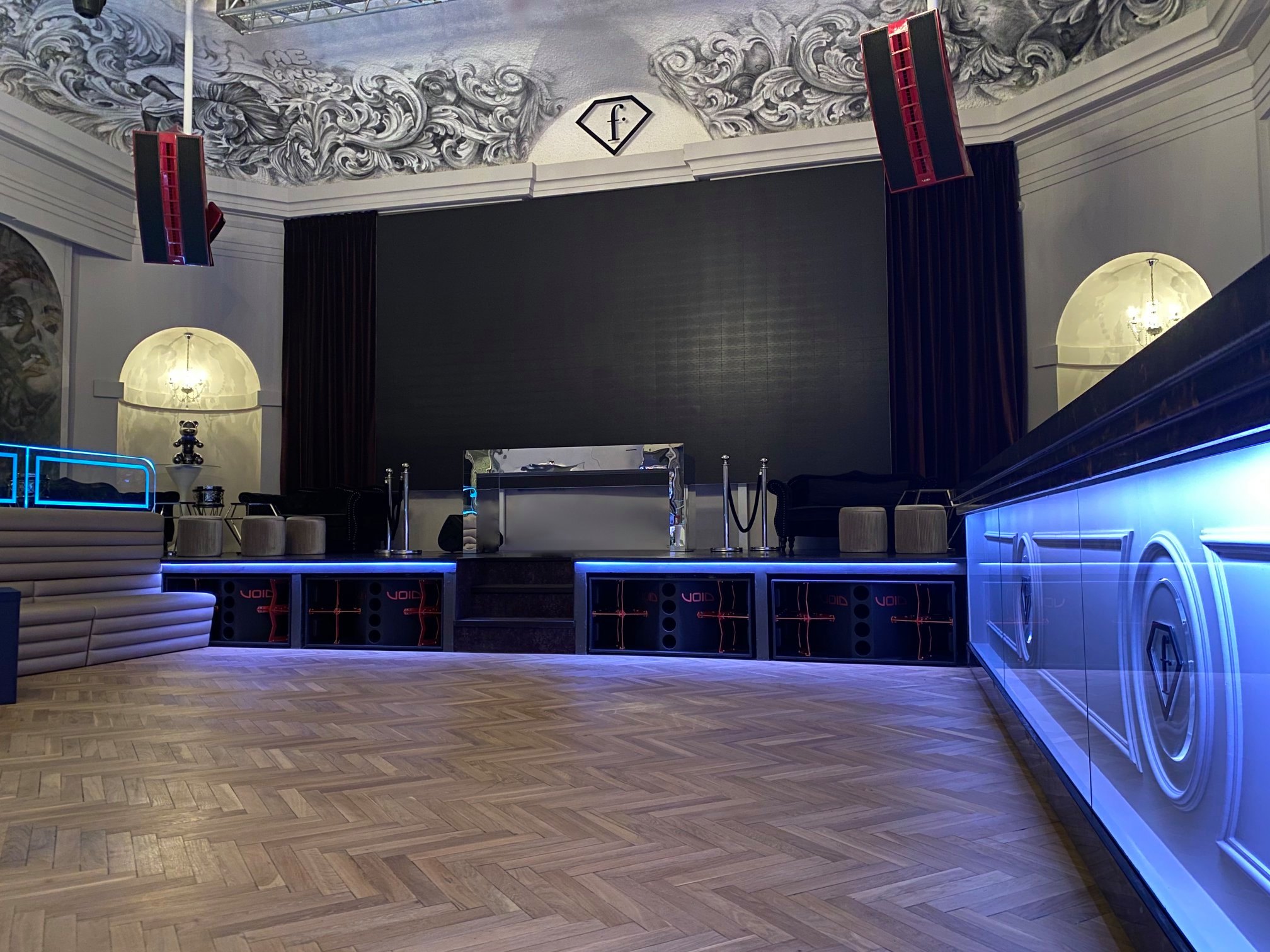 Nagłośnienie i oświetlenie części głównej dancefloor oraz nagłośnienie przestrzenne PA całego lokalu sterowane centralnie.